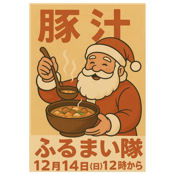 12月のふるまい隊のお知らせ 12月14日 日曜日 12時より なくなり次第終了です! 今回は豚汁! 冬の初めは豚汁でしょ! 今回もやき房さんのおばあちゃんの 新鮮野菜がたっぷりです! お時間ある方は … 続きを読む 12月のふるまい隊は・・・
